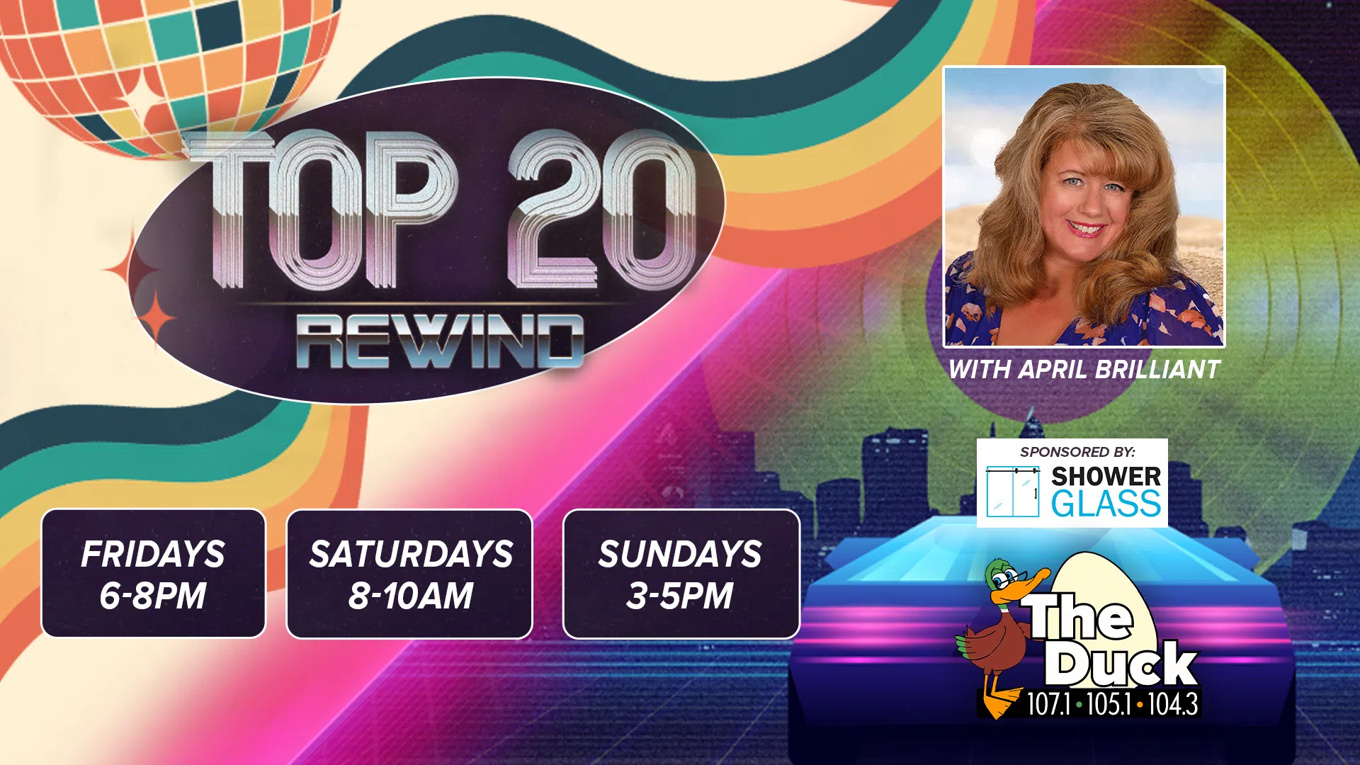 The Duck Thanks for listening! April's Furry Friends Each Wednesday, April will introduce you to a dog or cat from the Wicomico Humane Society, Top 20 Rewind Fridays from 6-8 PM, Saturdays from 8-10 AM, and Sundays from 3-5 PM. See Feature 0See Feature 1See Feature 2 ContestsSocial Podcasts More EpisodesRecently Played